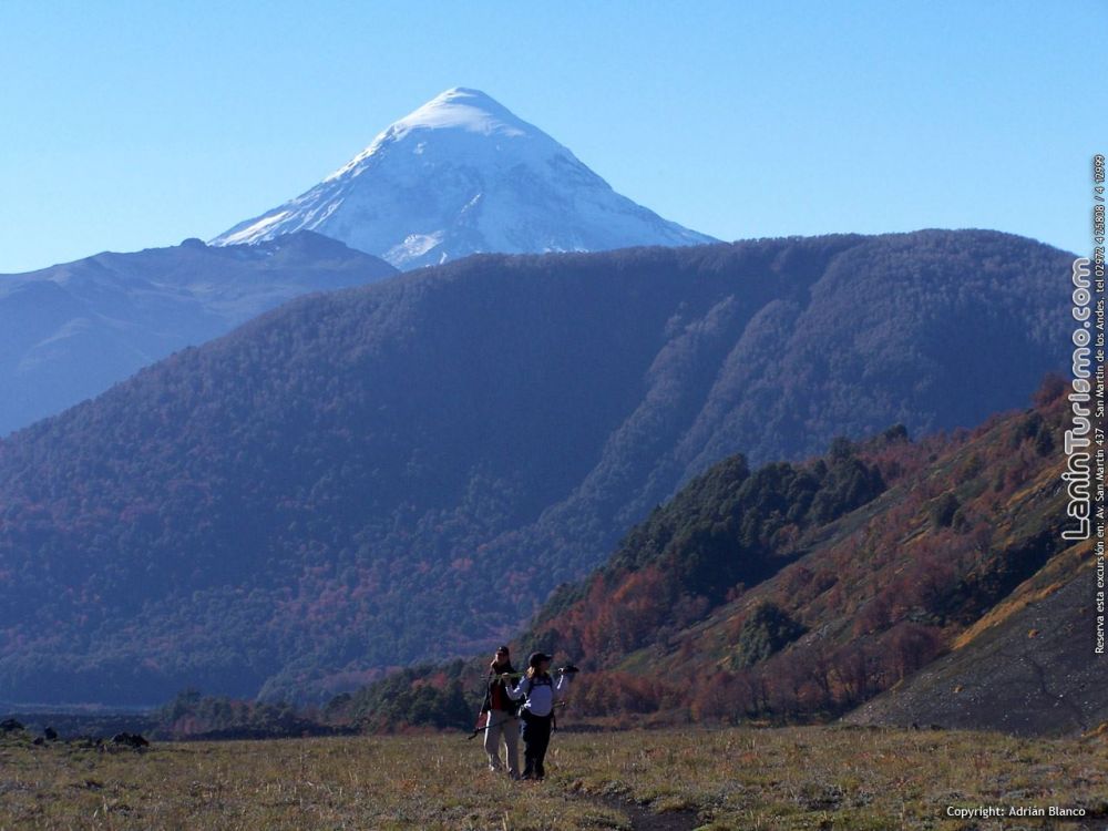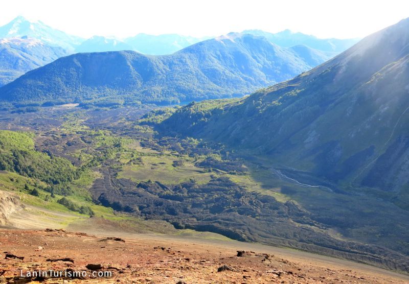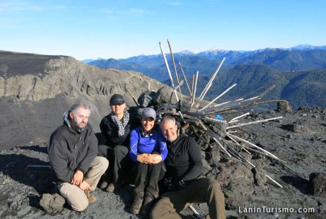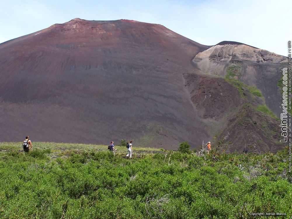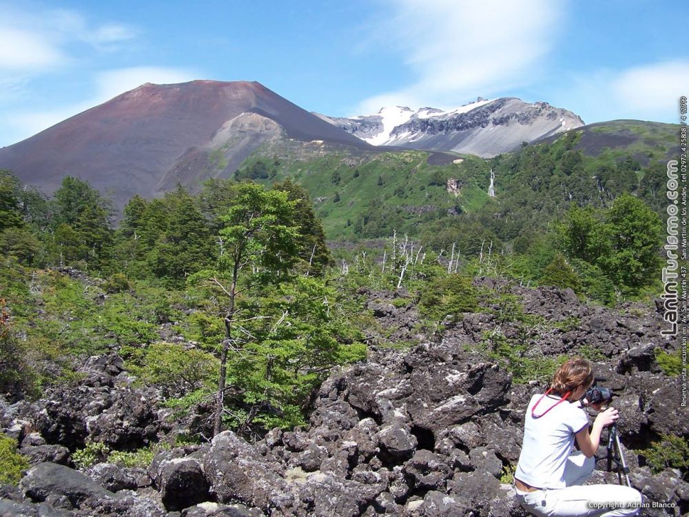 El crater se ve claramente definido y Desde la cumbre tendremos una imponente vista del Volcán Lanin, el sorprendente valle del Auquinco surcado por el río de lava que en su derrotero corta el bosque hasta terminar su descenso en el lago Epulafquen y el imponente cerro Huanquihue.
