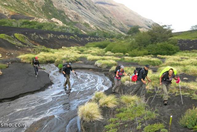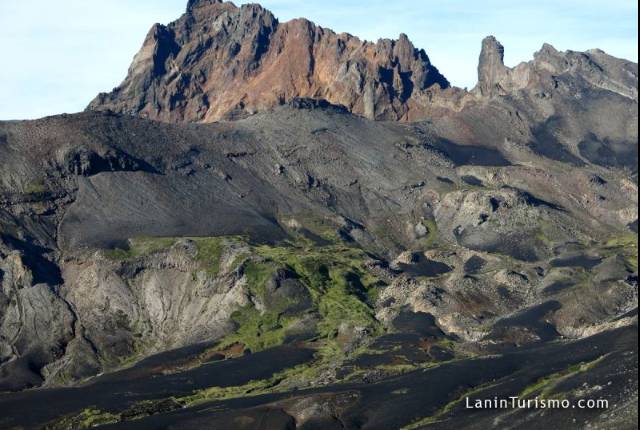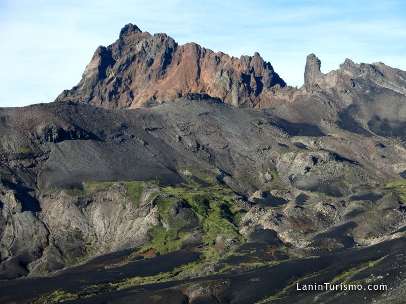 Atravesando sus sedimentos, no dejaremos de maravillarnos por sus caprichosas formas que exigen una maixima precaución pues son de una filosa e irregular forma. Su contextura es como la piedra pómez y de color negro. Sobre él, aún no hay vegetación y en nuestro ascenso podremos ver desde diferentes puntos su arrasador paso, hasta desembocar en la Laguna Verde y el Lago Epulafquen,