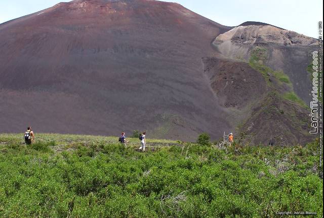 Desde la base del volcán, tendremos una hora y media mais de ascenso pero el nivel de pendiente desde este punto cambiará significativamente. A fin de describirlo es como subir una duna gigantesca, mucho mais grande de lo que jamais veríamos siendo lo mais sorprendente el color del suelo, pues está compuesto por arena negra volcánica.