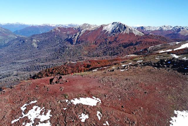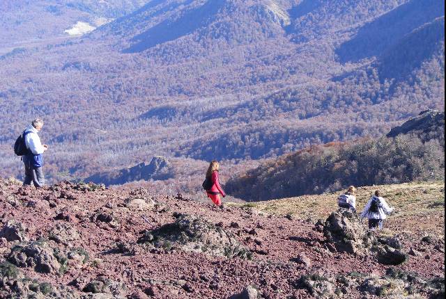 Cruzaremos una gran cantidad de miradores naturales de roca y llegaremos a la precumbre, donde comenzaremos a ver un suelo que será cada vez mais rojizo hasta llegar al bordó. La textura de cada roca será muy similar a la piedra pómez y esto se debe a que estaremos arribando al sector del antiguo cono volcánico que con sus diferentes erupciones, baño de lava solidificada toda la cumbre.