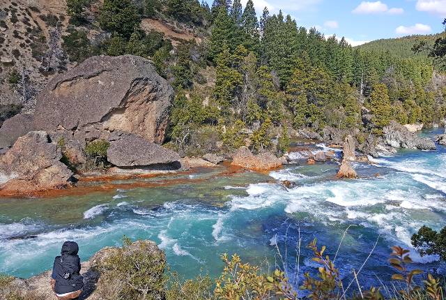Tiempo después recorreremos los alrededores de este poblado para seguir en dirección a del Paso del Córdoba. En el camino nos detendremos en el hermoso Cajón del Caleufu, un sector donde el río se angosta impactando contra enormes piedras de un particular color y formando diferentes rápidos que con caprichosas líneas generan un cuadro difícil de olvidar.